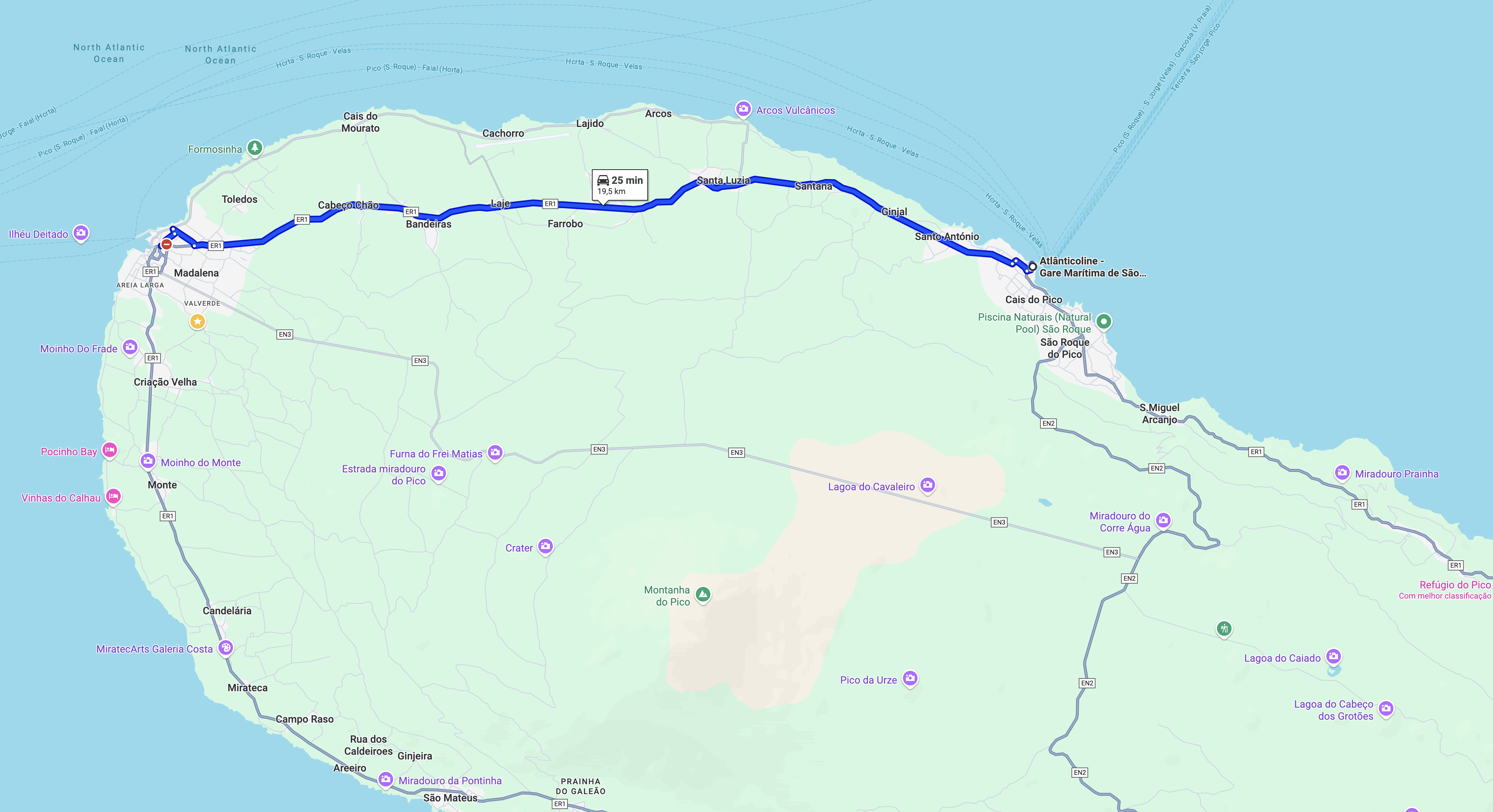 Gare Marítima Porto São Roque do Pico > Dabney3 | 25 minutos | 19,5km